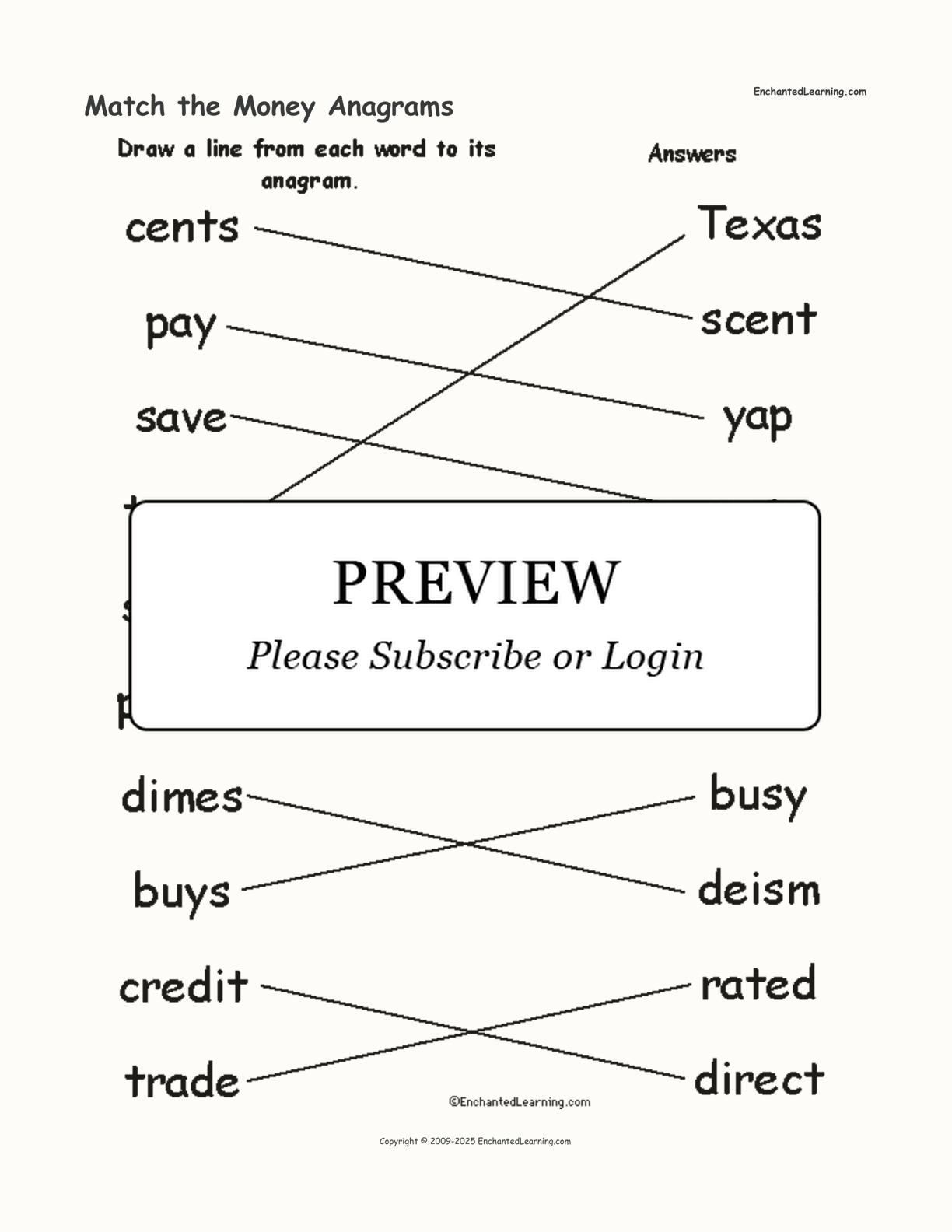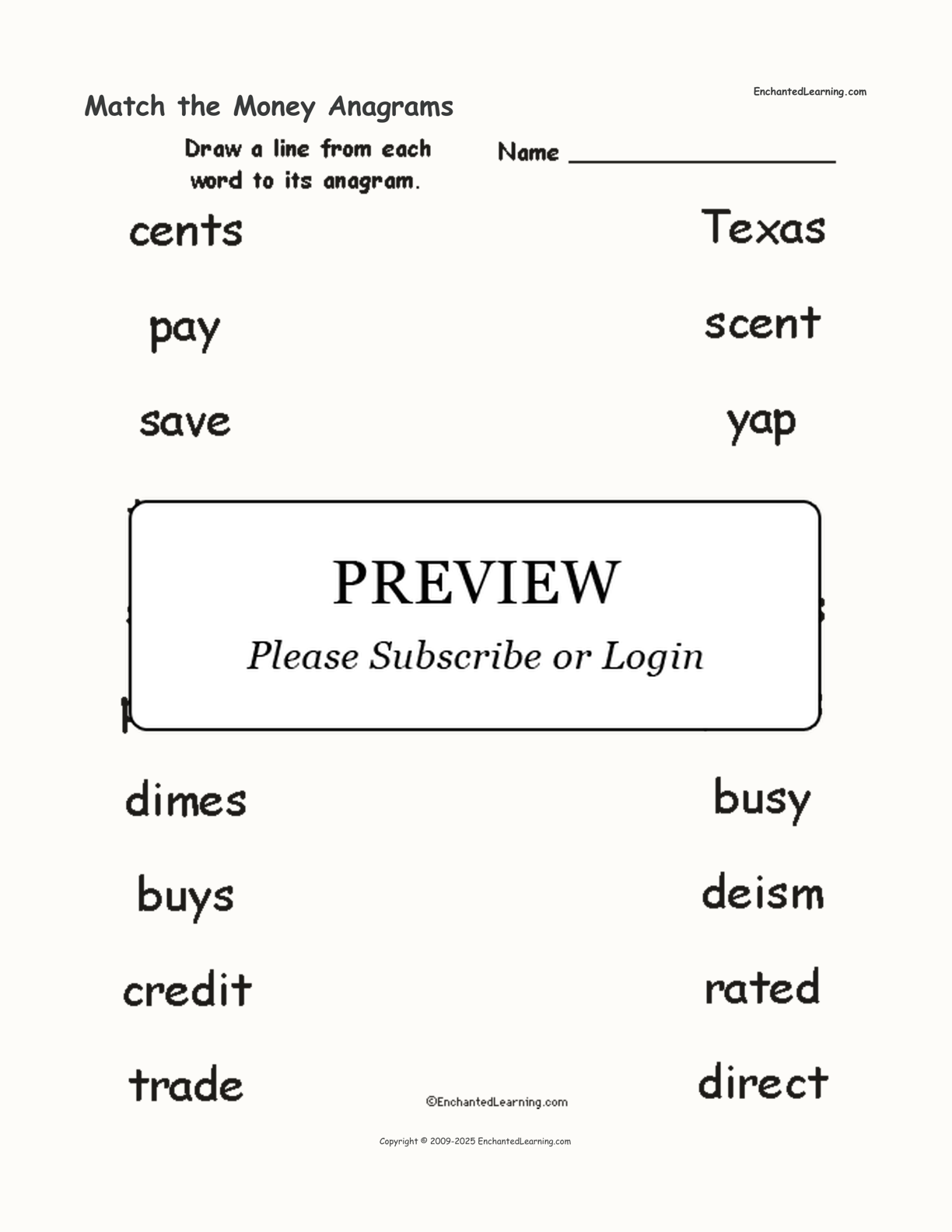 Draw a line from each money-related word to its anagram in this printable worksheet.