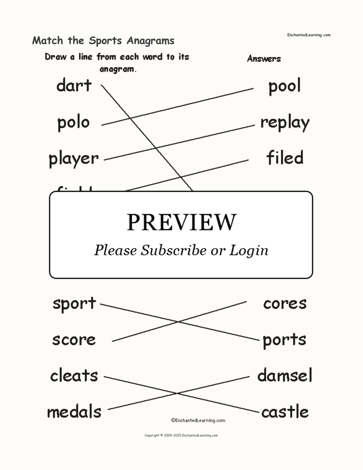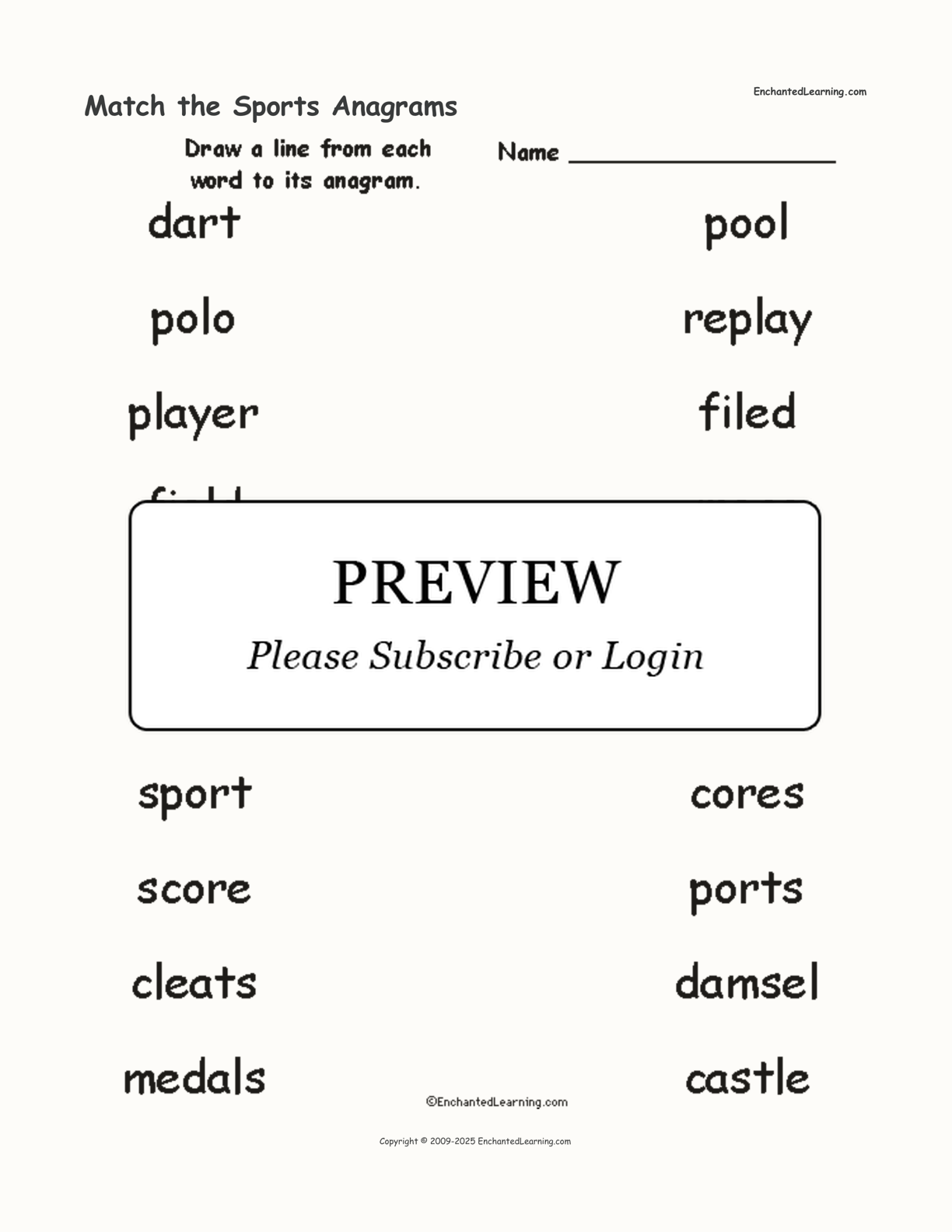 Draw a line from each sports-related word to its anagram in this printable worksheet.