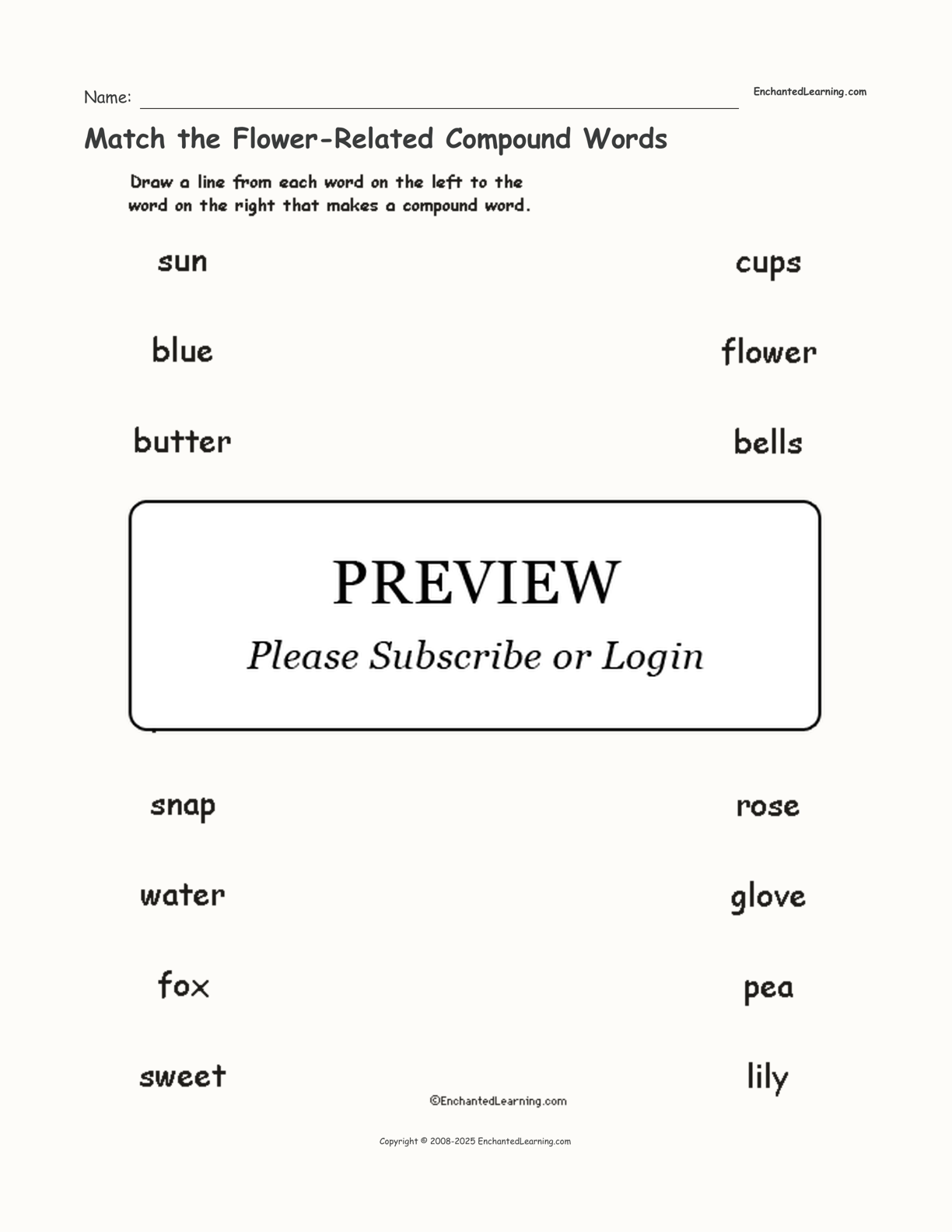 Draw a line from the word on the left to the word on the right that make a flower-related compound word.