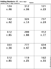 This is a thumbnail of the Addition Printout: 3 Digits + 2 Digits worksheet.
