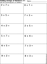 This is a thumbnail of the Addition Printout: Add Strings of Two Numbers worksheet. The full-size printout is available only to site members.