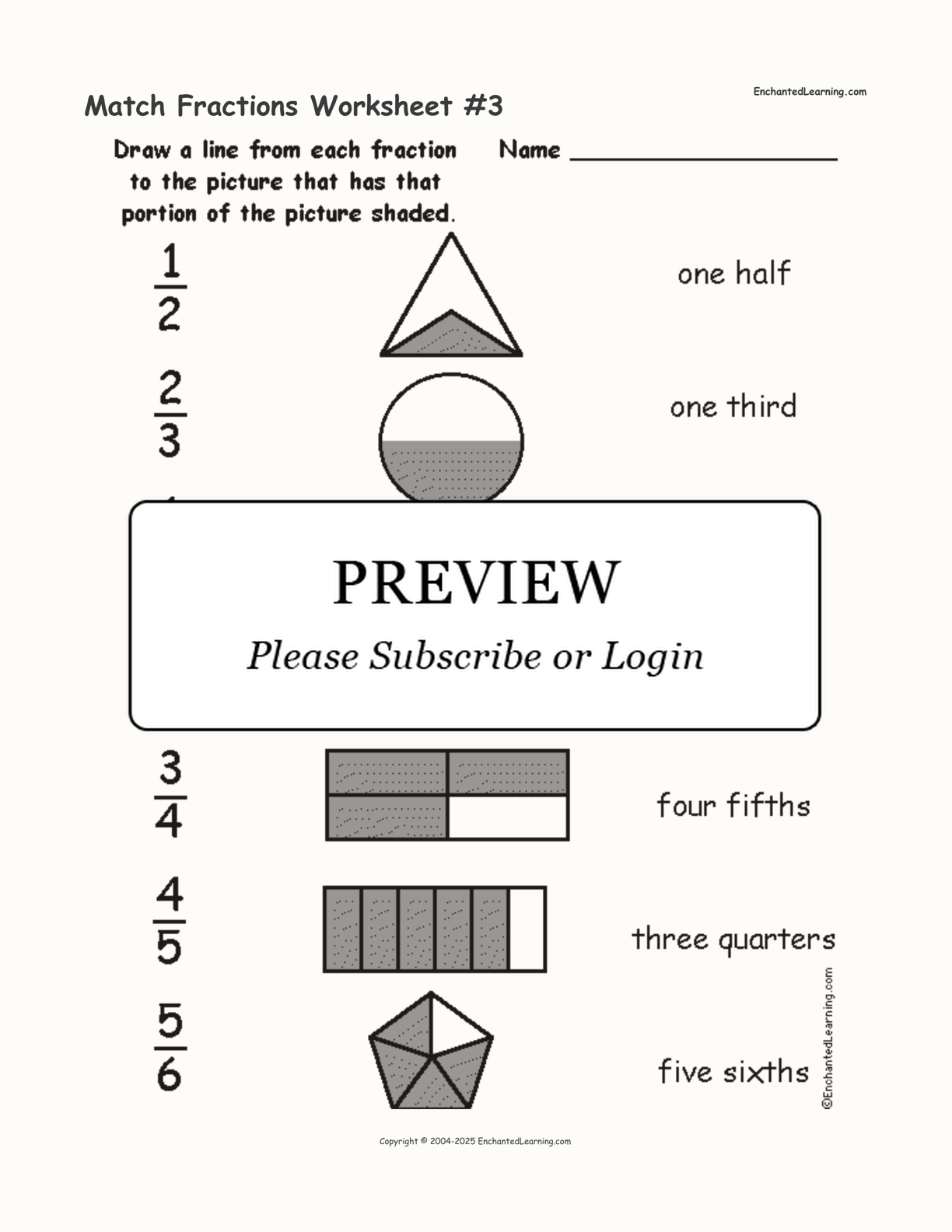 Match Fractions Worksheet #3