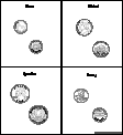 Color four US coins, front and back.