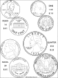 Color the front and back of a nickel in this printout.