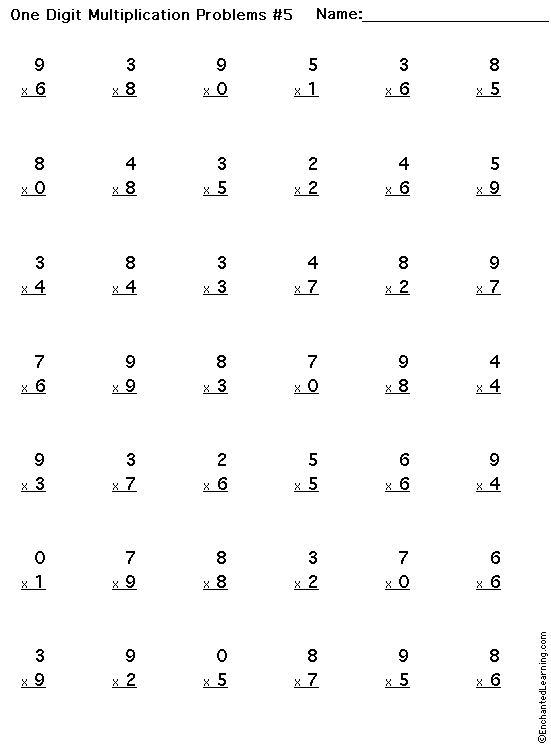 Multiplication Printout: 1 Digit x 1 Digit (a)