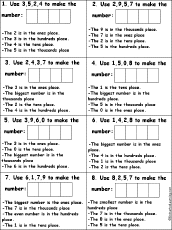 | Place Value Puzzle #2 Write 4-digit numbers given clues on place value. |