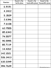 | Answers | Rounding Decimal Numbers Grid Worksheet #3 Round the decimal numbers to the tenths digit, hundredths digit and thousandths digit. |