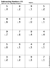 This is a thumbnail of the Subtraction Printout: 1 Digit - 1 Digit worksheet. The full-size printout is available only to site members.