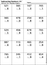 This is a thumbnail of the Subtraction Printout: 3 Digits - 1 Digit worksheet. The full-size printout is available only to site members.