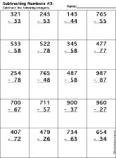 This is a thumbnail of the Subtraction Printout: 3 Digits - 2 Digits worksheet. The full-size printout is available only to site members.