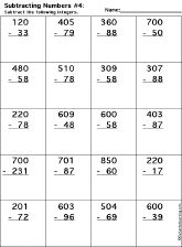 This is a thumbnail of the Subtraction Printout: 3 Digits - 2 Digits worksheet (All borrows). The full-size printout is available only to site members.