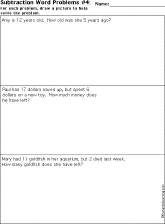 This is a thumbnail of the Subtraction Printout: Subtracting Two Numbers Word Problems worksheet #4.