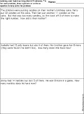 This is a thumbnail of the Subtraction Printout: Adding and Subtracting Word Problems worksheet #4. The full-size printout is available only to site members.