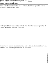 This is a thumbnail of the Subtraction Printout: Adding and Subtracting Word Problems worksheet #6. The full-size printout is available only to site members.