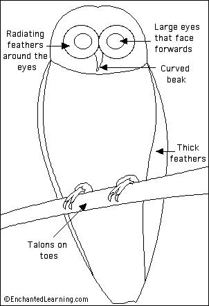 | More Information on Owls | EnchantedLearning.com Owl | Animal Printouts Label Me! Printouts |