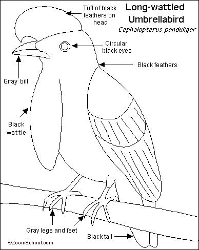 | More Information on Birds | EnchantedLearning.com Umbrellabird | Animal Printouts Label Me! Printouts |
