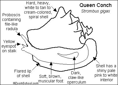 | Mollusk Printouts | EnchantedLearning.com Queen Conch or Pink Conch | Animal Printouts Label Me! Printouts |