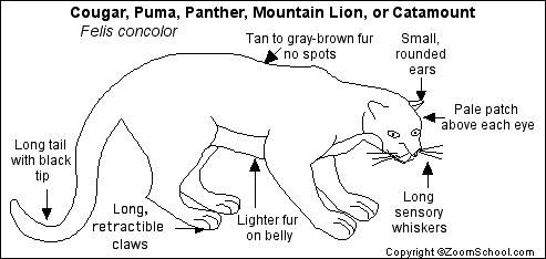| All About Mammals | Cougar, Puma, Mountain Lion, Panther, or Catamount | Animal Printouts Label Me! Printouts |