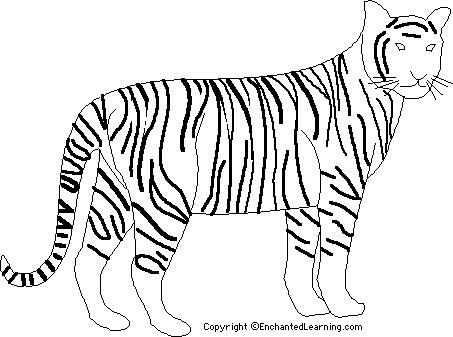 Tigers range from 4.5-9 feet (1.4-2.7 m) long and weigh up to 500 pounds (230 kg). The coat ranges from white to orange-brown, and has black, brown, or grey stripes. The ears are small and round, have a black back and a white spot in the middles.