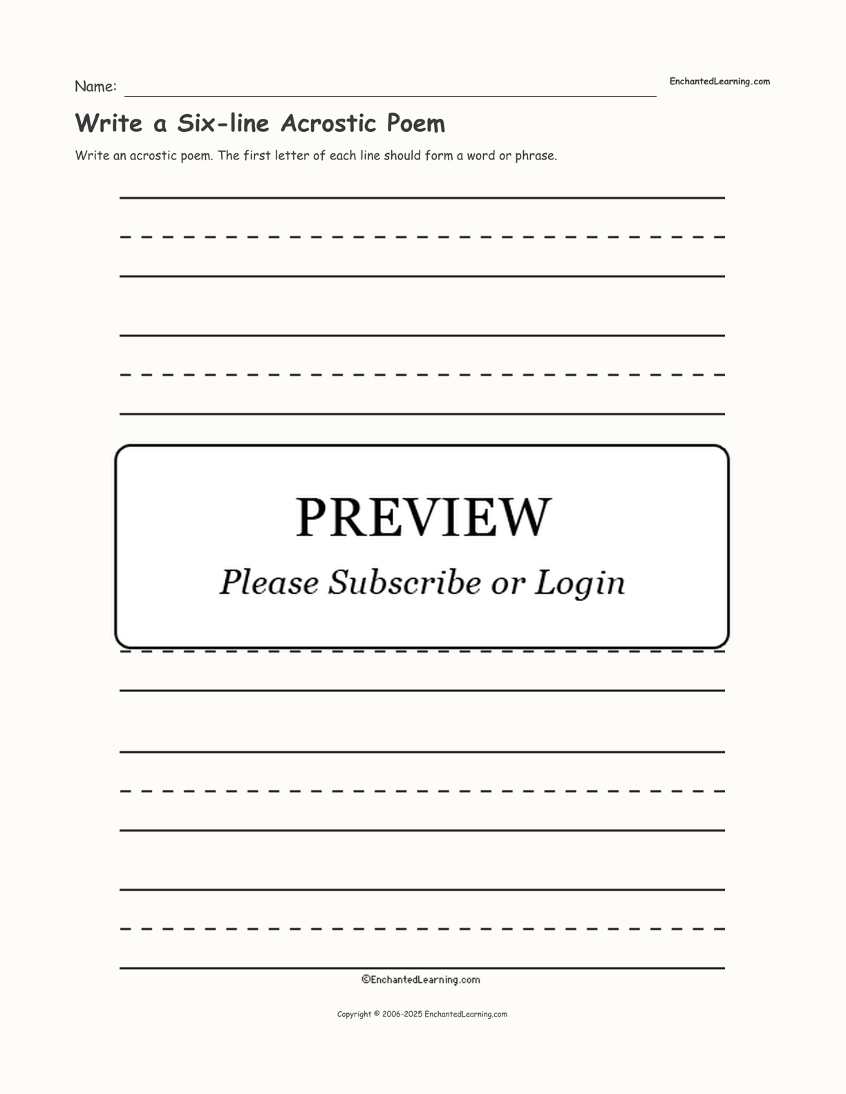Write a Six-line Acrostic Poem