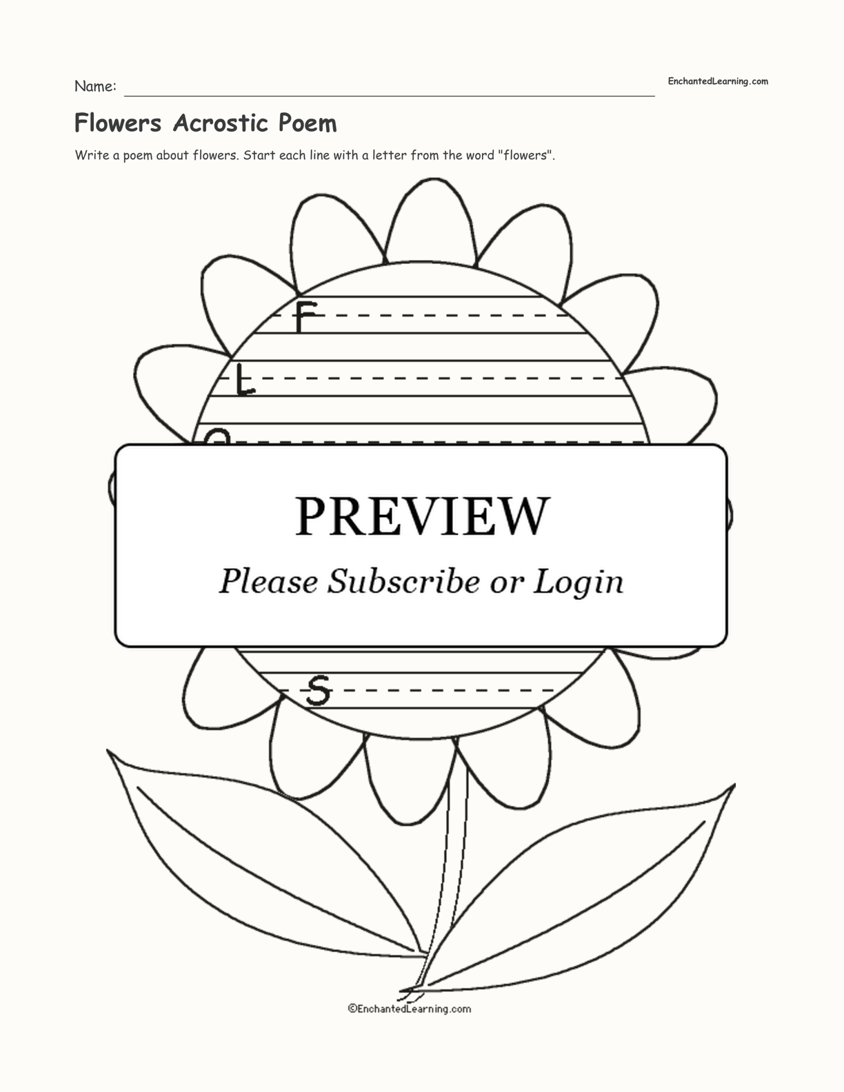 Write an acrostic poem about flowers. Start each line with a letter from the word “flowers”.