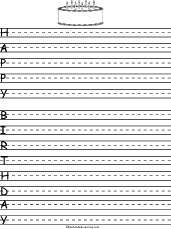 Draw a birthday scene, then write an acrostic poem about it. Start each line of your poem with the letter on that line. Or go to a pdf of the poem.