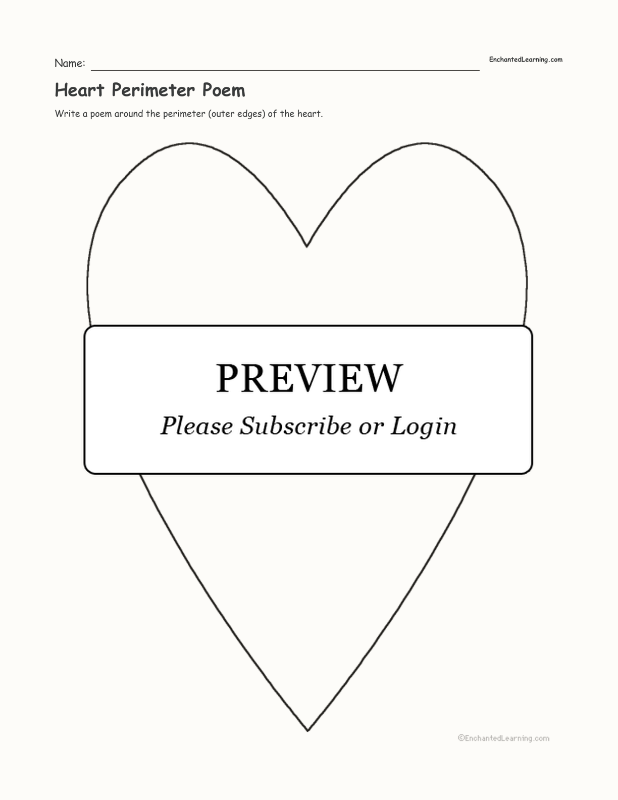 Write a poem around the perimeter (outer edges) of the heart in this printable worksheet.