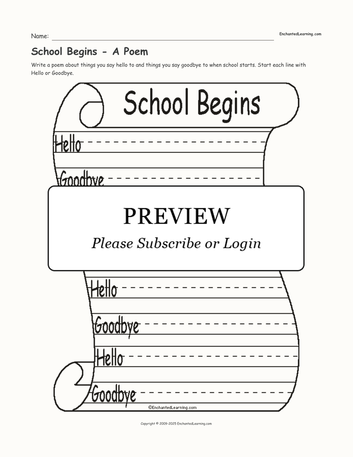 Write a poem about things you say hello to and things you say goodbye to when school starts.
