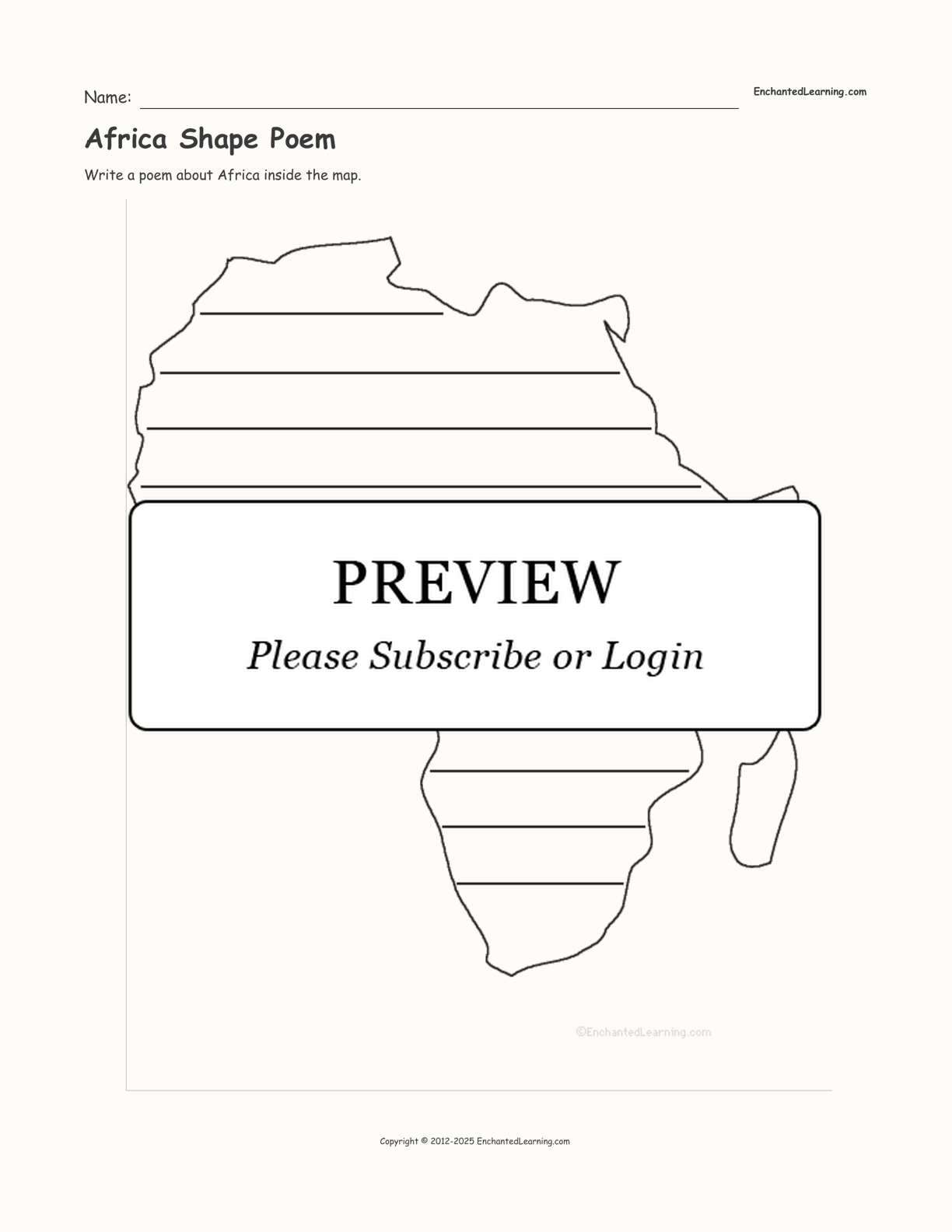 In this ‘Africa Shape Poem’, write a poem about Africa inside the map.