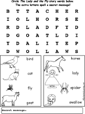 The Old Lady and the Fly Wordsearch Puzzle Find the words in The Old Lady and the Fly wordsearch puzzle, then use the extra letters to find the secret message: "The old lady died." Or go to the answers. |