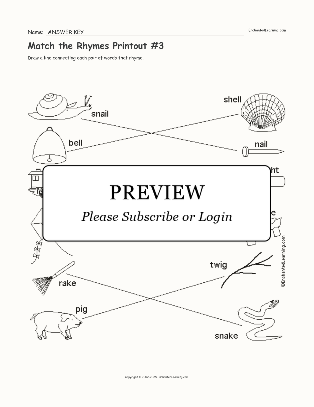 Match the Rhymes Printout #3