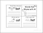 A book for early readers with words that have the “at” sound, like: cat, hat, rat, vat, and mat.