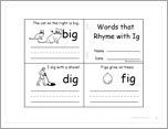 A tiny, printable book about simple words rhyming with ‘ig’ – for early readers and writers.