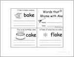 This is a tiny, printable book about simple words rhyming with ‘ake’ – for early readers and writers.