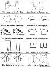 | EnchantedLearning.com Clothing: Left and Right -- Color the Items of Clothing Facing Left or Right |
