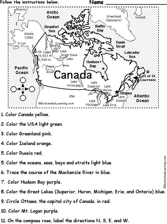 Canada - Follow the Instructions: A printout about Canada and maps for young readers.
