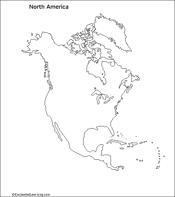 Outline Map North America: A collection of geography pages, printouts, and activities for students.