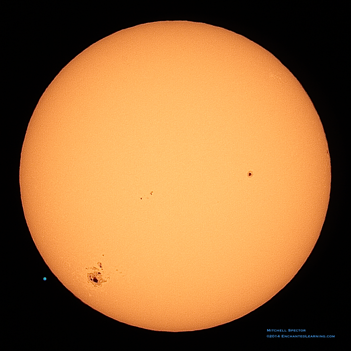 Sun with Large Sunspot on Nov. 6, 2014, and the Full Moon That Night