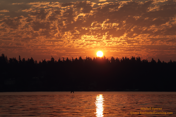 Bird Flying at Sunrise, over Lake Washington