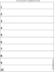 This is a thumbnail of the page "Put 10 Spelling Words in ABC Order - Use this worksheet to put 10 spelling words in alphabetical order." The full-size printout is available only to site members.