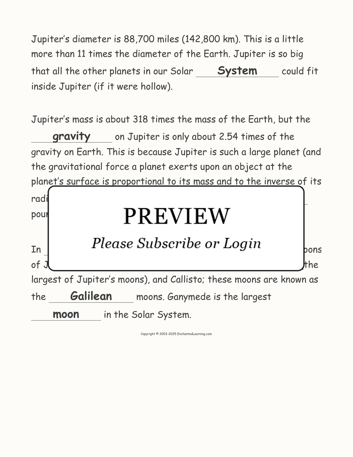Use the word bank to fill in the blanks in this Jupiter cloze activity. This is a printable worksheet.