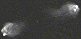 CYGNUS A Cygnus A (located in the constellation Cygnus) is the most powerful radio source visible from Earth. This double-lobed radio galaxy is 500,000 light-years wide and is located 600 million light-years from Earth. It was identified by Hey, Parsons and Phillips in 1946. |