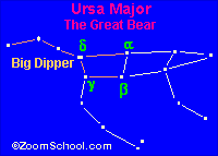 Ursa major (The Great Bear) is a well-known constellation in the Northern Hemisphere that contains the 7 stars of the Big Dipper.