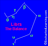 [Abbreviation: Lib] Libra (the balance) is a constellation of the zodiac. Libra is seen along the ecliptic between Virgo and Scorpius. The brightest star (Alpha 2 Lib) in Libra is Zuben Elgenubi, the second-brightest star (Beta Lib) is Zuben Elschemali, the third-brightest star (Gamma Lib) is Zuben Elakrab, and the fourth-brightest star (Delta Lib) is Zuben Elakribi