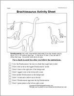 A worksheet about the Brachiosaurus: Check off each instruction as you complete it.