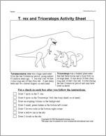Follow the instructions in this printable worksheet about Trex and Triceratops!