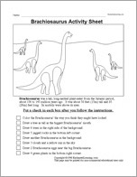 A worksheet about the Brachiosaurus: Check off each instruction as you complete it.