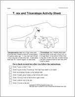 Follow the instructions in this printable worksheet about Trex and Triceratops!