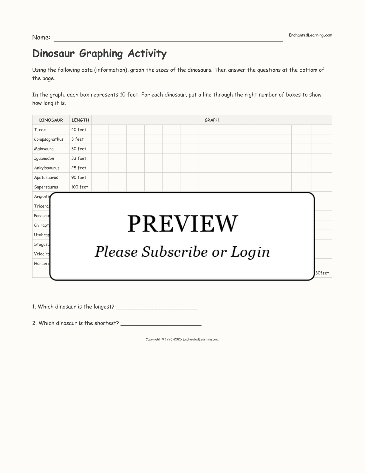 Make a graph of the dinosaur’s sizes using the provided graph/chart.