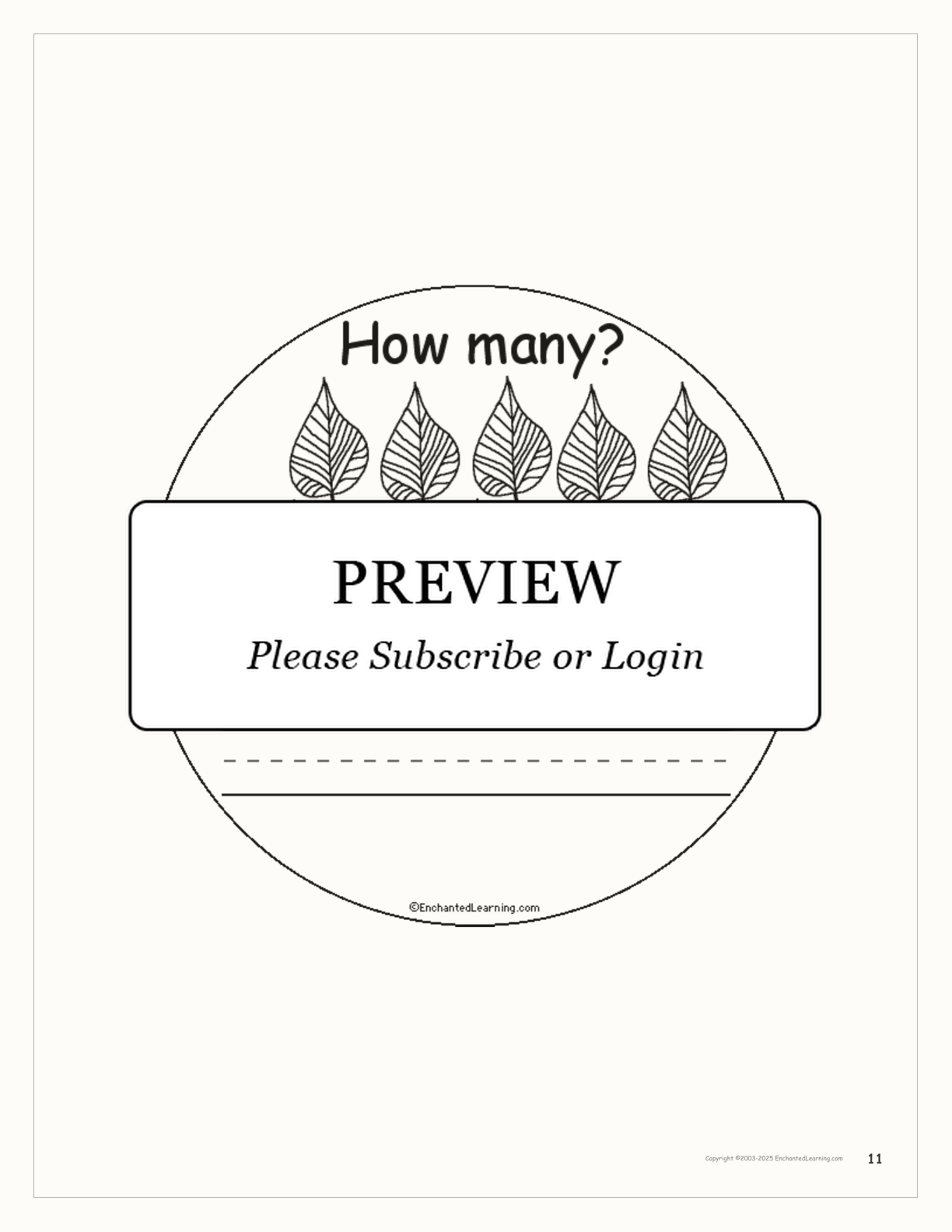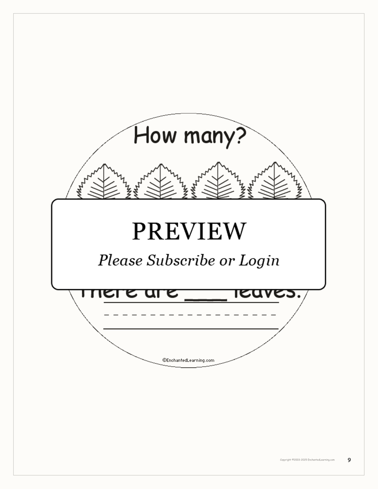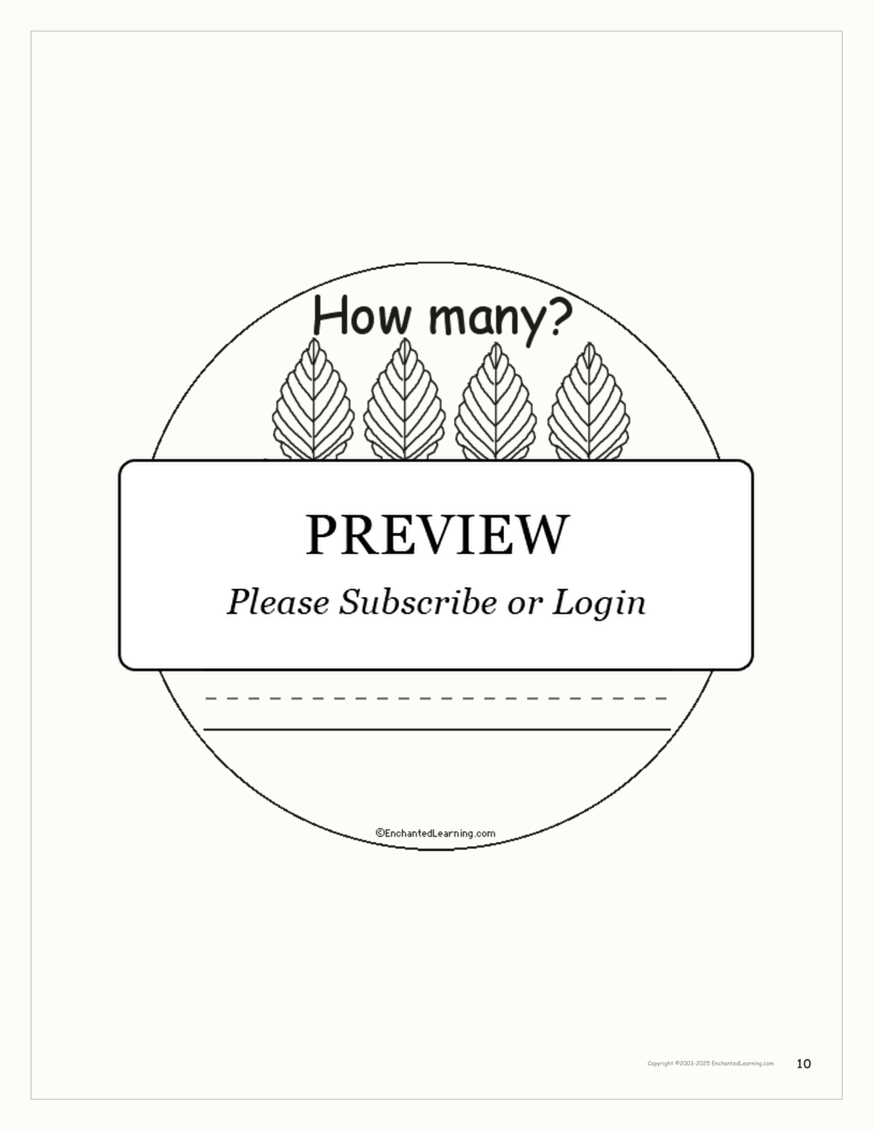 This is a short, printable book about leaves and the numbers from 1 to 10. It’s for early readers, with pages for the student to cut out, items to count and color, and a short phrase to copy.